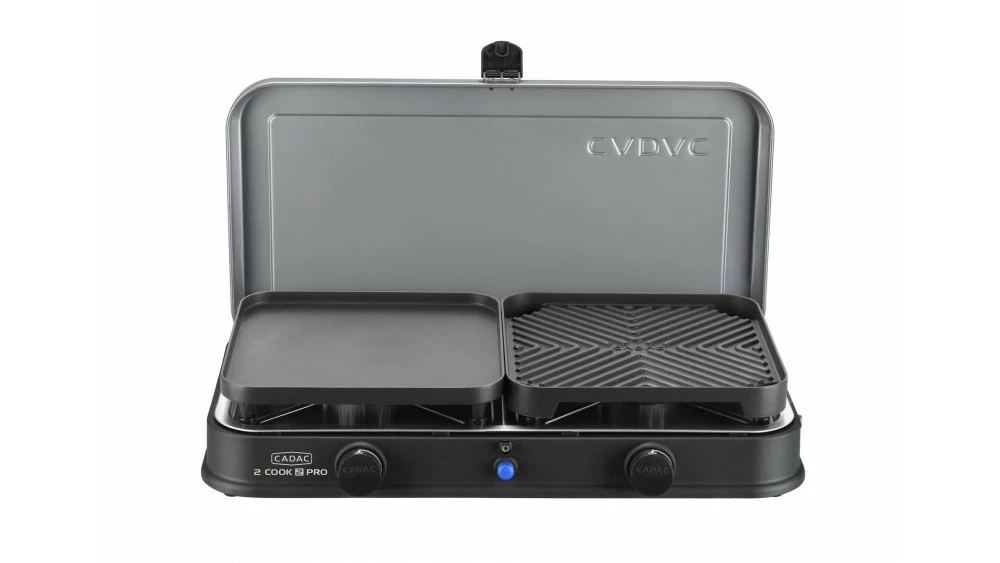 The Cadac 2 Cook Supreme is an extremely versatile camping stove which features two independent burners and an easy to light piezo ignition system. The Cadac 2 Cook Deluxe comes complete with two separate cooking surfaces which can be added or removed depending on what your cooking needs are. One surface features a non-stick ribbed griddle which is ideal for cooking meat, fish, chicken or vegetables. The second surface is a flat non-stick griddle which is ideal for fish, pancakes, and entire breakfasts. Both of these surfaces can be removed to allow the hob burner underneath to be used. This means you can cook and BBQ or cook and fry at your convenience.